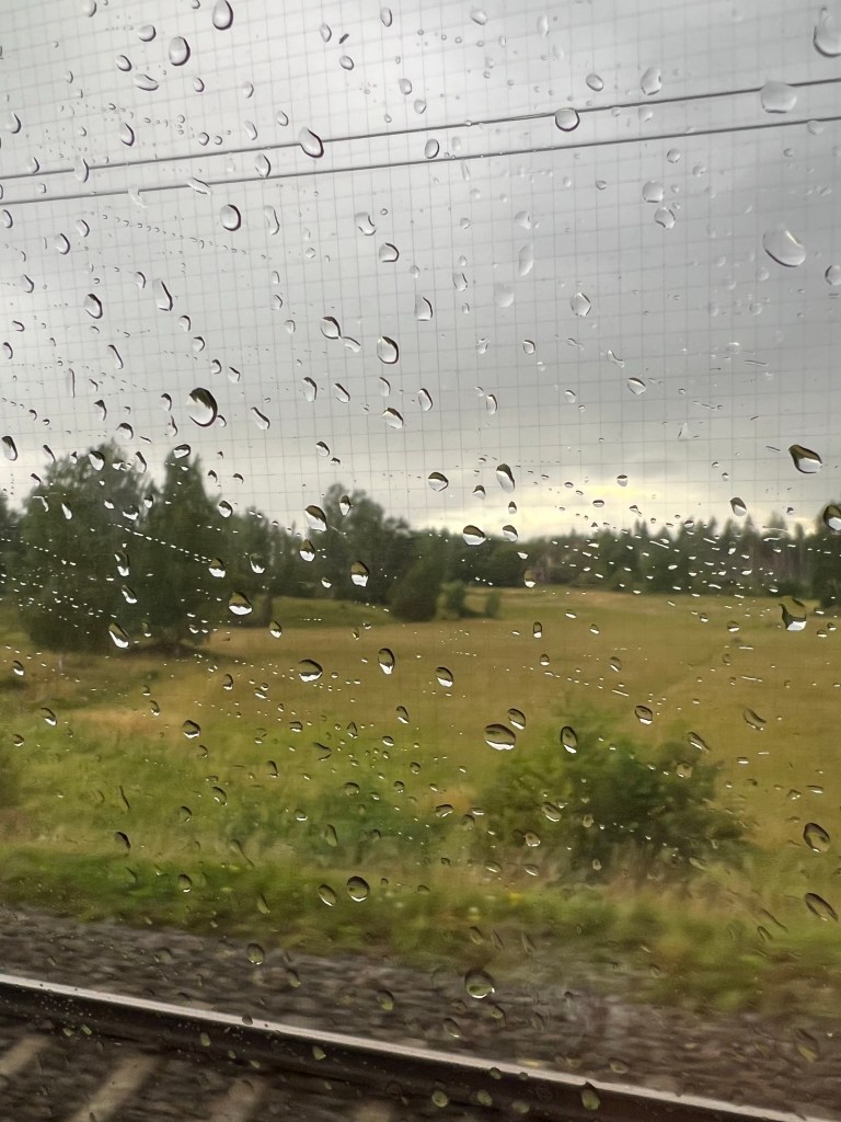 För en gångs skull är jag i riktigt bra tid, men jag glömde bananerna. Skit samma, bananer kan man alltid köpa. Jag är i så god tid att jag hinner promenera de tre kilometrarna till tåget, jag hinner också nästan ångra detta beslut när svetten tränger fram och axlarna börjar klaga över att ryggsäcken är för tung och inte riktigt inställd. Men jag härdar ut, försöker att tänka på att jag inte kommer kunna träna på en vecka, att jag dessutom kommer sitta ner nästan konstant under de kommande 17 timmarna.