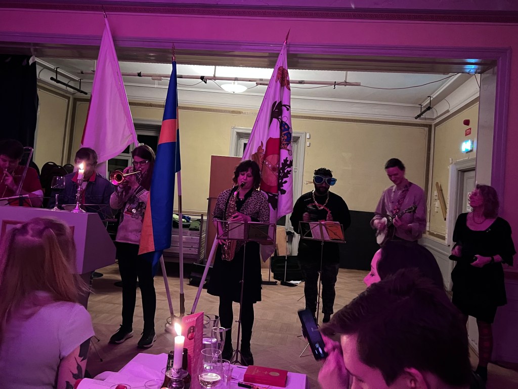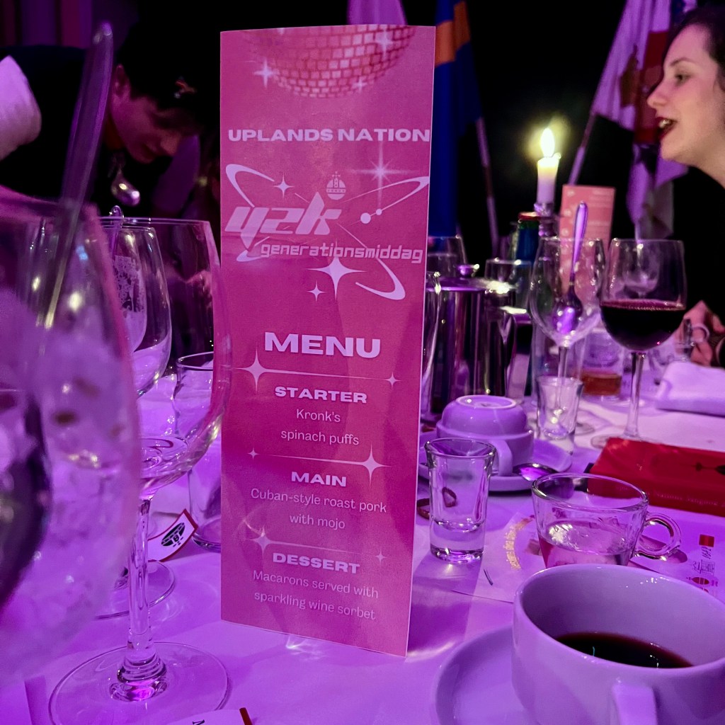 I lördags var det så årets upplaga av Seniorskollegiet, följt av generationsmiddag. Temat var 00-tal och när jag gjorde mig i ordning för balunset och letade i min gamla utklädningslåda efter passande detaljer, la en tidsenligt makeup och målade naglarna knallgröna så insåg jag just detta, att det här var min tid. Så fantastiskt att få gå tillbaka och spöka ut sig i en glasigt grön nylonklänning från 2005 och dricka snaps, sjunga massor av visor och lyssna på både fyndiga tal, ordvitsar och Wijkmanska blecket! I sällskap av många av dem som var aktiva samtidigt som jag plus några andra både äldre och yngre. Jag återfick känslan av att vara på rätt plats vid rätt tid och hade roligare än på länge. Vann dessutom en sejdel med is-vatten, för att jag svarade 32 på frågan hur många vattenkranar det finns på uplands, rätt svar var 34, men ingen annan hade fler rätt. Det bästa var att jag lyckades dricka upp hela utan att kissa på mig. Isvatten är fan najs asså.